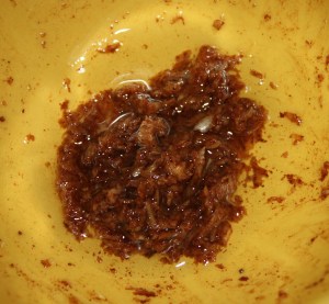 Colocar en un bol y colar encima todo el jugo que ha quedado en la fuente del horno.