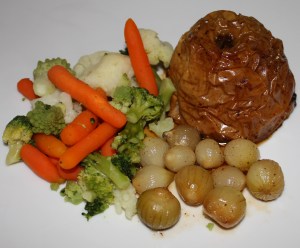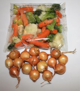 - 200 g de verduritas congeladas ( en la sección de congelados las podéis encontrar. Si las encontráis, hay unas bolsitas que contienen miniverduras que se hacen en el microondas en 5 minutos y están buenísimas. La bolsa que he comprado contiene zanahoria baby, coliflor brocoli y romanesco ). Esto en una idea, pero acompañarlo de lo que más os guste ( en la categoría de acompañamientos del blog tenéis muchas recetas )