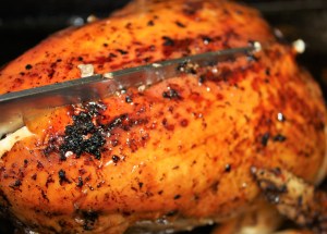 Untar con la mitad del majado, solamente por la parte de arriba, la de las pechugas.