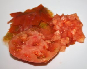 - 1 tomate natural ( yo he utilizado Raf, con el que la salsa sale muy buena pero podéis emplear el que tengáis en la nevera e incluso de lata, el que es natural y ya esta pelado )