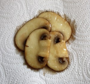 Cortar 4 láminas de champiñón y reservar el resto para otras recetas.