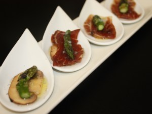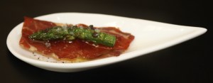 Colocar encima el jamón y la punta de espárrago. Rallar un poco de trufa, unas gotas de aceite virgen extra, unas escamas de sal y A COMER!!!!