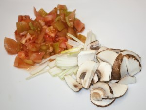 La cebolla en juliana y el champiñón en láminas gorditas y cada una por la mitad.