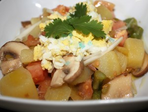 ….poner los dados de patata. Otra vuelta y a un bol.