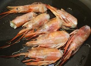 En la misma sartén donde hemos hecho la salsa dorar los carabineros salpimentados.