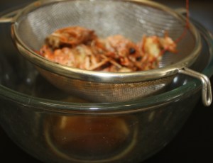 Ponerlas en un colador de malla fina sobre un bol y aplastarlas para extraer más jugo.