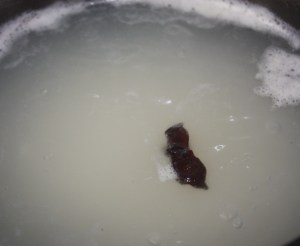 Cuando el agua comience a hervir aparecerá en la superficie una espuma blanca. Desespumar.
