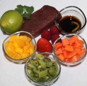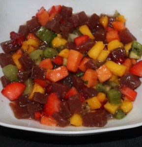 Juntar el contenido de los dos boles, el del atún y el de las frutas, mover bien y LISTO!!!! Fácil, fácil y muy bueno. Además se pude tener preparado en la nevera y no tener que estar en el último momento cocinando.