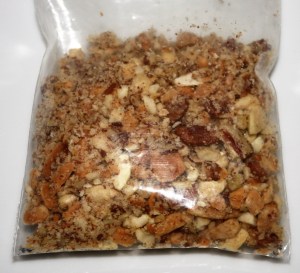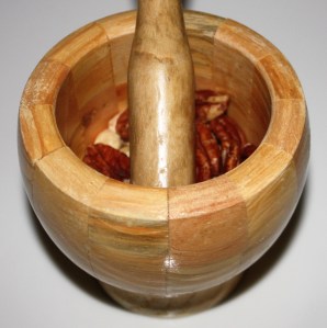 En un mortero triturar: 12 anacardos, 12 almendras y 12 nueces ( utilizar los frutos secos que tengáis en la despensa ).