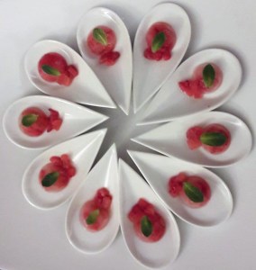 Servir con unos daditos de fresón y una hoja de hierbabuena.