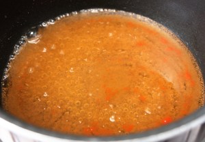 Lo añadimos al cazo y dejamos cociendo a fuego fuerte otros 3 minutos, hasta conseguir una consistencia de caramelo ligero.