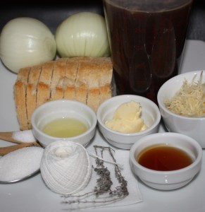Nosotros hoy la vamos a hacer con un fondo oscuro de ternera muy reducido, de manera que el resultado final será una «sopa» en la que el pan absorbe la mayoría del caldo. Resulta sabrosísima.