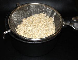 Enjuagar la quinoa en un colador.