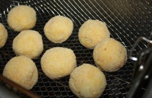 Por último pan rallado. Cuando ya estén rebozadas es cuando podemos moldearlas bien, ya que de las bolas quedará poco.