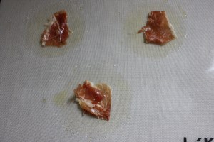 Colocar sobre cada oblea un trozo de jamón.