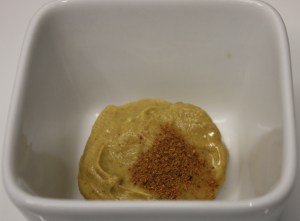 Mezclar bien la mostaza con la nuez.