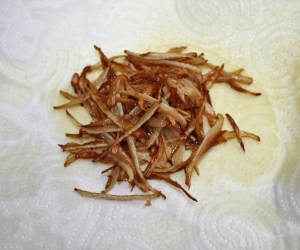 Escurrir sobre papel de cocina para eliminar el exceso de aceite.