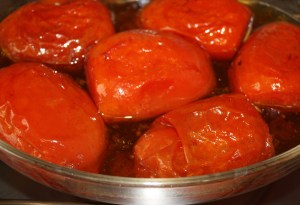 Volver a dar la vuelta a los tomates y hornear otros 30 minutos a 180º y finalmente volver a voltearlos y 15 minutos a 220º.