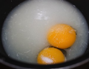 - La yema de 2 huevos pequeños