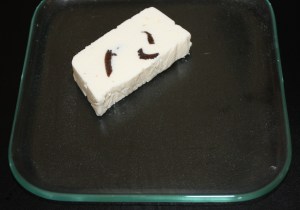 Rellenar con el queso. Forrar con el film y meter en la nevera 24 h para que se endurezca.