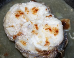 Dar la vuelta a la cortada de rape y dejar otros 5 minutos hasta que el caldo quede reducido.