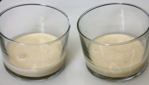 Llenar la base de dos vasos chatos de vino e introducir en la nevera hasta que cuaje.