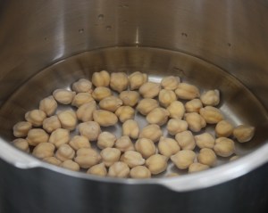 Calentar el agua de cocer los garbanzos y la de cocer la morcilla.