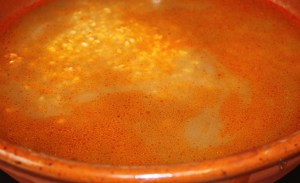 Poner el doble de caldo que de arroz, para ello medimos previamente el arroz en un recipiente que utilizaremos para medir el caldo, este debe estar caliente.