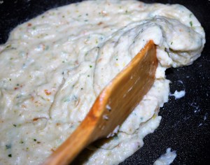 Añadir el resto de la leche y sal. Seguir moviendo sin parar con las varillas, 5 minutos a fuego medio para que vaya espesando.
