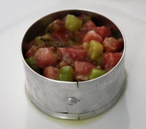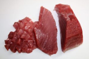 Cortar el atún en pequeños dados.