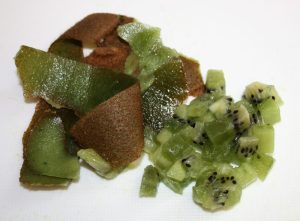 Pelar el kiwi y cortarlo también en daditos.