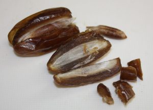 Cortar los dátiles por la mitad. Eliminar el hueso y cortarlos en cuadraditos.
