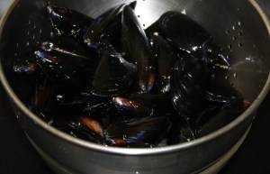 Si solamente vamos a utilizar la molla, sin las valvas, para un guiso, espaguetis, clóchinas en escabeche… no hace falta que las limpiéis mucho. Ponerlas a remojo en agua fría y frotar entre ellas, cambiando el agua hasta que salga limpia. Abrirlos ( poner una olla al fuego y cuando esté caliente añadir las clóchinas. Tapar y dejar a fuego fuerte unos 3 minutos ). Dejar enfriar, sacar la carne y colar el agua que han soltado por una estameña para eliminar los restos que hayan quedado. Las estameñas son unos coladores de tela que podéis comprar en cualquier bazar chino.
