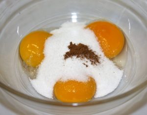 Batir las yemas con la otra mitad del azúcar y la canela.