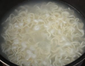 En una olla con agua hirviendo y una cucharadita de sal poner los noodles.