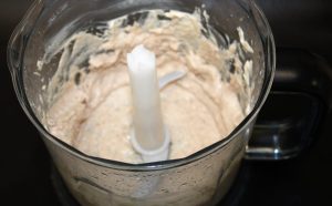 Triturar las anchoas, atún, mayonesa y caldo de cocción de la carne.