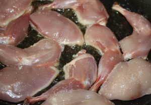 En una sartén con las otras 4 cucharadas de aceite, dorar los muslos y pechugas salados.