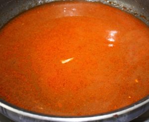Poner un poco de caldo para recuperar bien todo el aceite que ha quedado en la sartén.