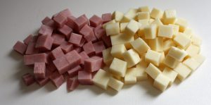 - Una cortada de queso tierno, también de 1 cm ( unos 130 g )