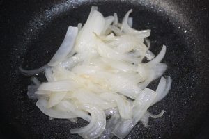 Cortar la cebolla en juliana fina.