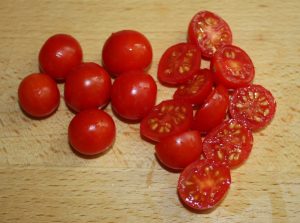 Partir los cherry por la mitad o si utilizáis tomates en rama, partirlos en dados.