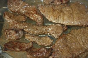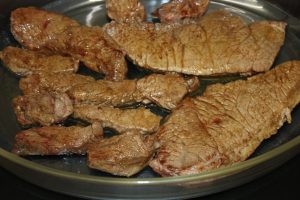 - 600 g de filetes de ternera tiernos ( entrecot, espalda, babilla, cadera…)