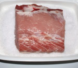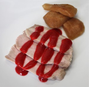 El lomo de cerdo es una pieza que suele resultar bastante seca al cocinarla. Si lo hacéis a la sal, y no demasiado, veréis como queda muy jugoso. Se puede comer solo, acompañado de patatas, verduras…, frio con mayonesa y lechuga, en fin de un montón de maneras. Tiene la ventaja de que una vez cocinado y cortado rodajas lo podéis congelar e ir utilizándolo poco a poco. Hoy lo vamos a acompañar de unas peras al horno y una salsa de frambuesa, pero solo con unas patatas fritas a los niños, y no tan niños, les encanta.