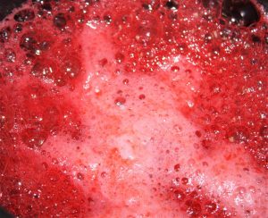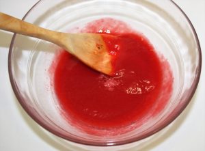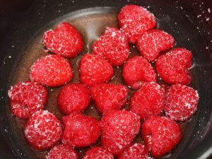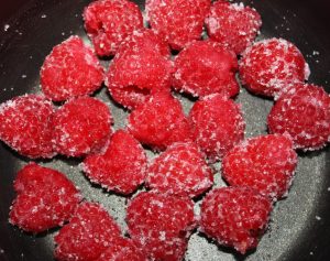 Una vuelta para que las frambuesas se impregnen del azúcar pero que este no se caramelice.