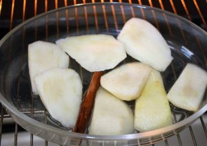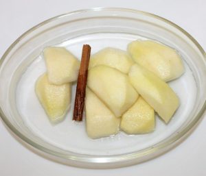 Colocar en una fuente de horno con 10 g de azúcar, medio vasito de agua y un palo de canela.