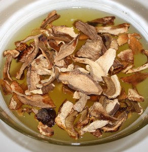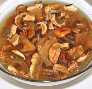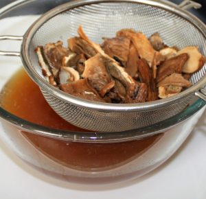 Calentar el caldo e introducir las setas para que se hidraten.