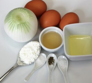 - 4 cucharadas de aceite de oliva 0,4º para pochar la cebolla y las setas y una cucharada de aceite virgen extra para aderezar el plato