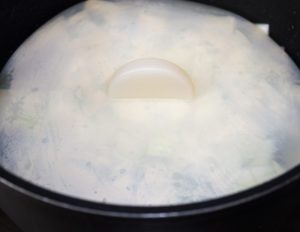 Hoy vamos a hacer una crema con las setas y caldo de pollo.