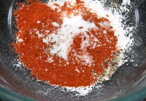 En un bol mezclar la harina, pimentón, sal y pimienta.
