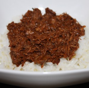 Servir el arroz con la carne desmenuzada encima. También se pueden poner los tacos sin desmenuzar….